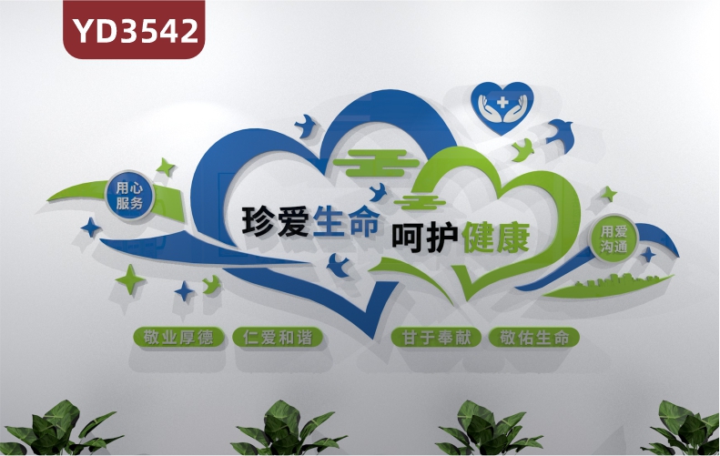 定制3D立体医院文化墙医院服务宗旨文化楼层指示分布展板装饰墙贴